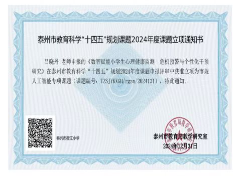 《数智赋能小学生心理健康监测 危机预警与个性化干预研究》