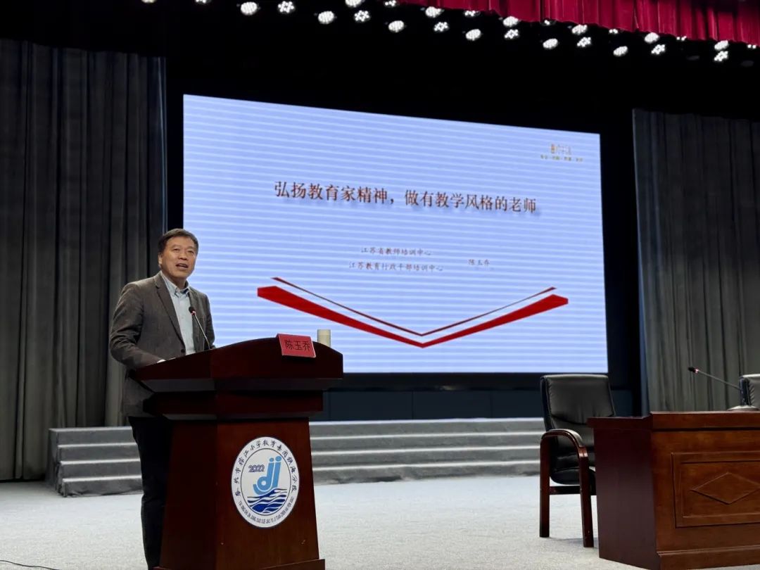 江苏省师训中心副主任陈玉乔围绕新时期教育变革趋势、数字赋能教学需求、跨学科教育挑战等内容,结合 “形势与挑战”“认识与理解”“思路与方法” 三大板块,深入解读高素质教师培养新要求与《中国式教育现代化 2035》发展思路。通过丰富案例,引导与会教师弘扬教育家精神,探索形成独特教学风格。