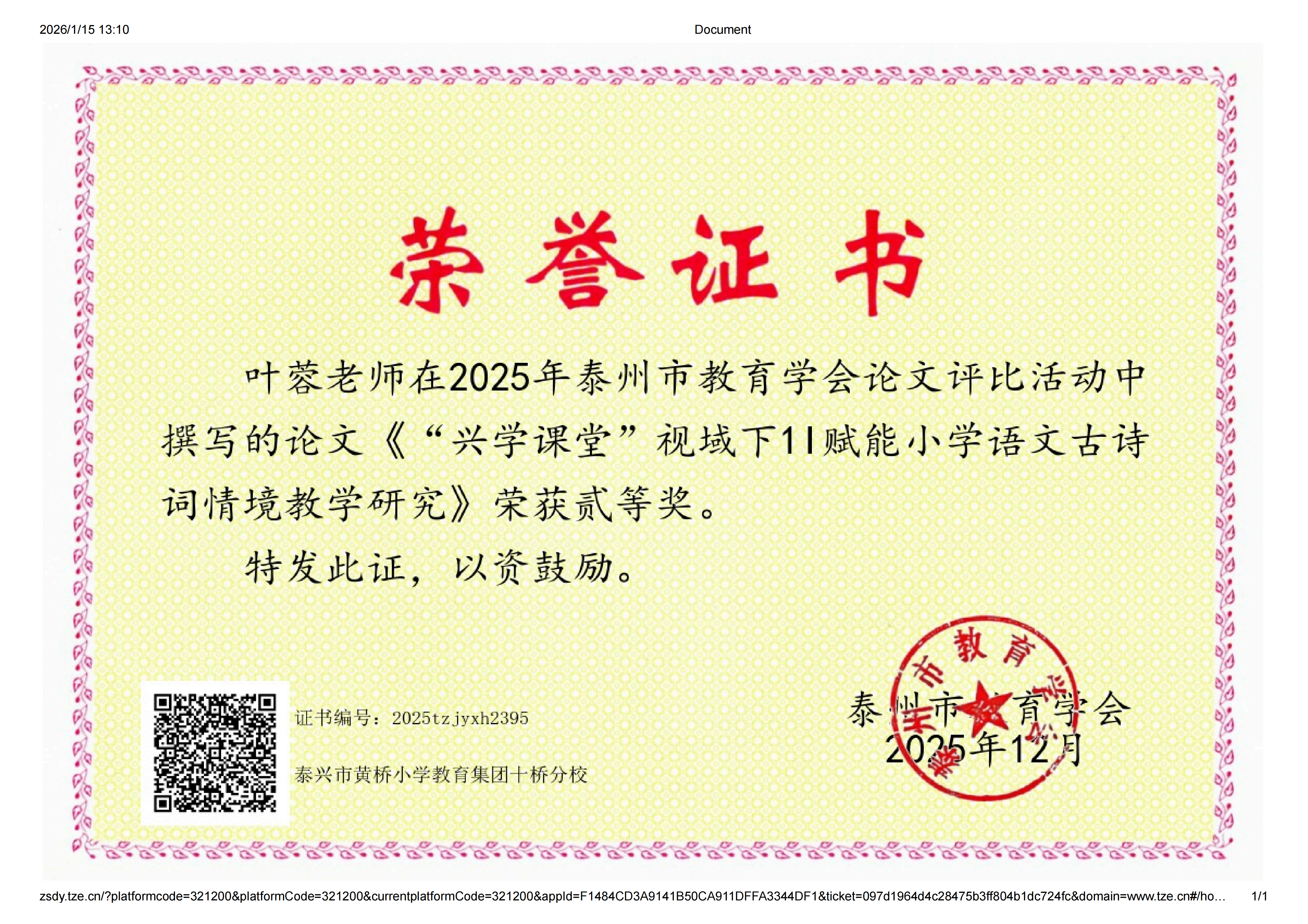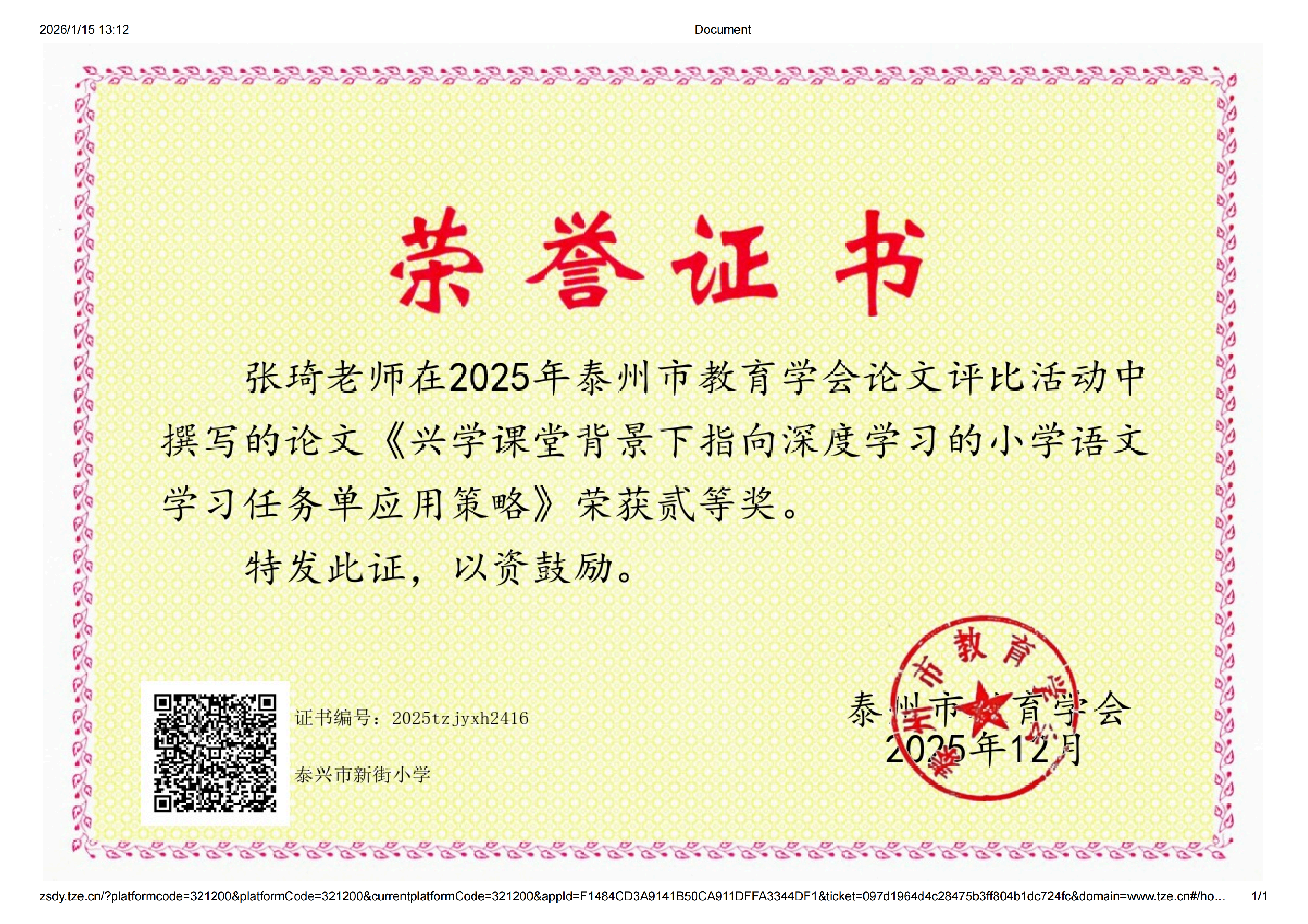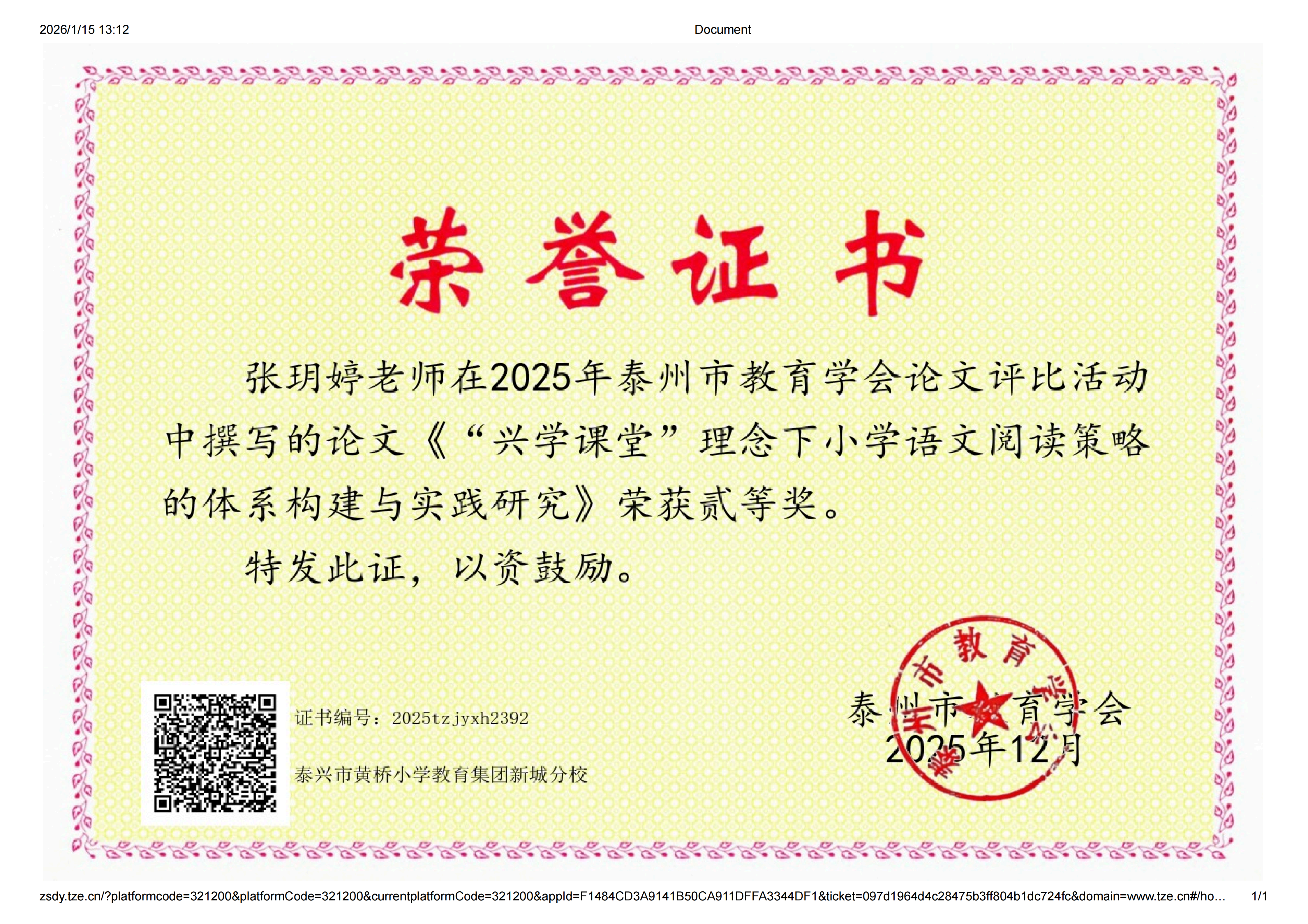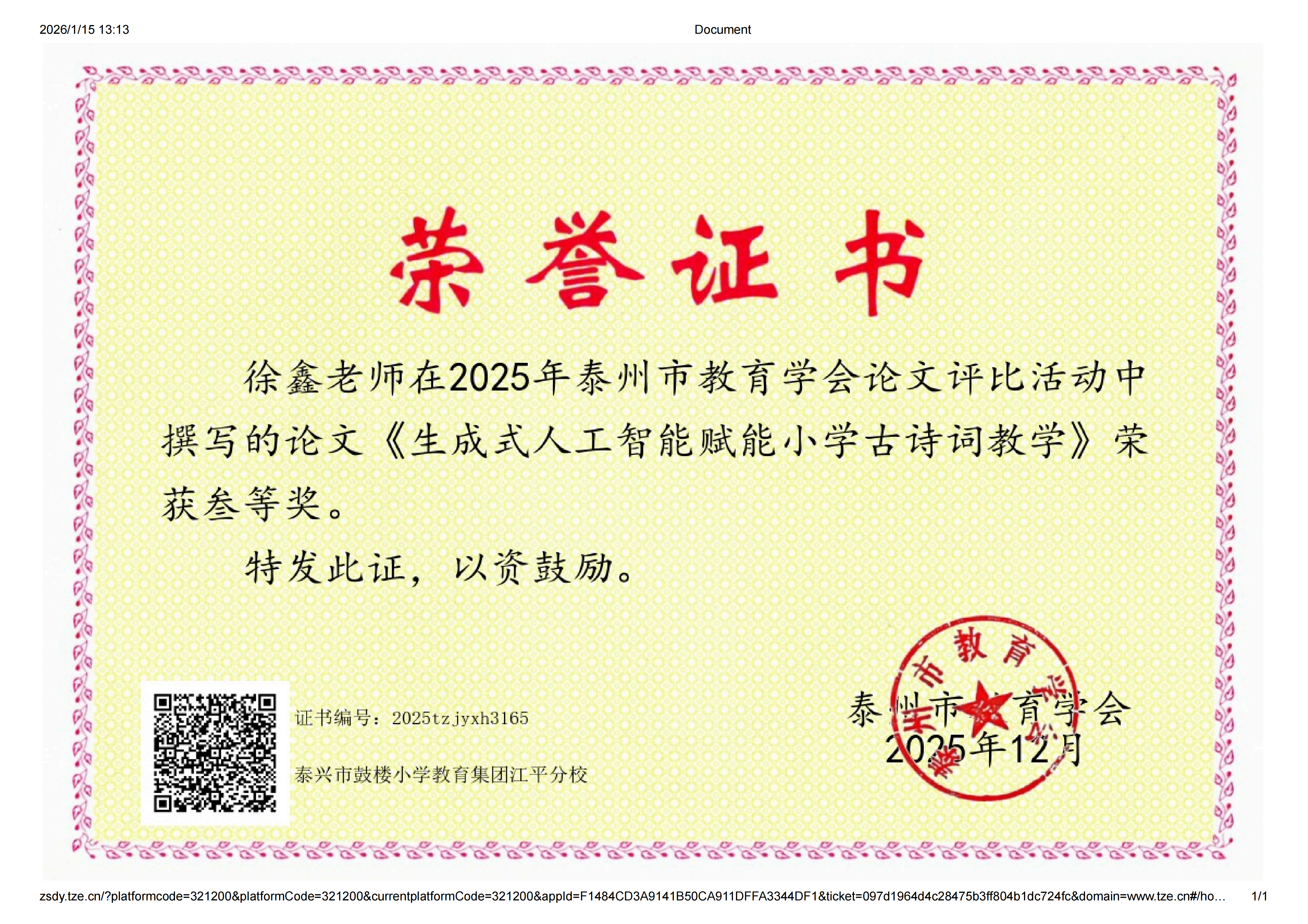 喜讯:工作室成员参加2025年泰州市教育学会论文评比8人获奖
