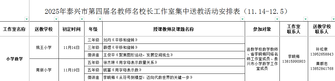 附件:2025年泰兴市第四届名教师名校长工作室集中送教活动安排表