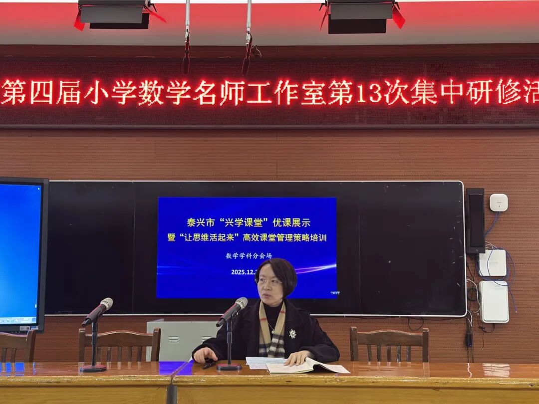 为深化课堂教学改革,提升教师课堂教学与管理能力,展示“兴学课堂”阶段性研究成果,2025年12月22日,泰兴市“兴学课堂”优课展示暨“让思维活起来”高效课堂管理策略培训活动于襟江小学教育集团襟江分校顺利举行。工作室全体成员在领衔人李晓梅主任的带领下全程参与,活动聚焦兴学课堂思维激活路径,优化高效课堂管理策略,通过专家讲座引领、课例实践观摩、深度点评研讨,全方位探究兴学课堂构建与学生思维成长的融合之道。