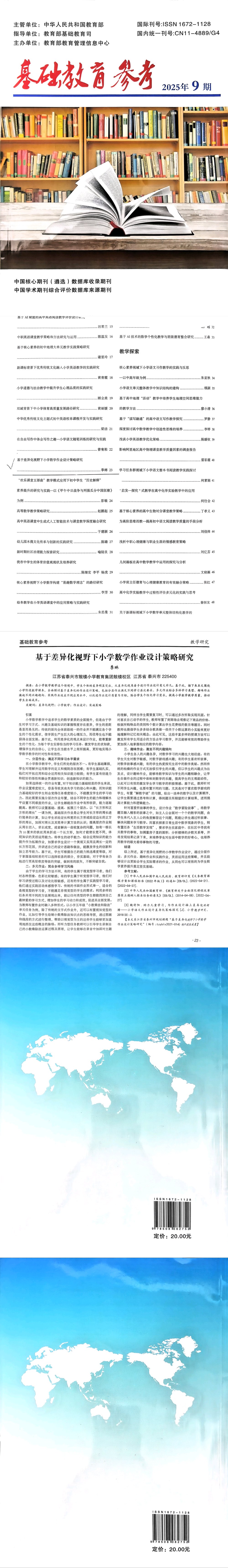 《基于差异化视野下小学数学作业设计策略研究》(季琳)