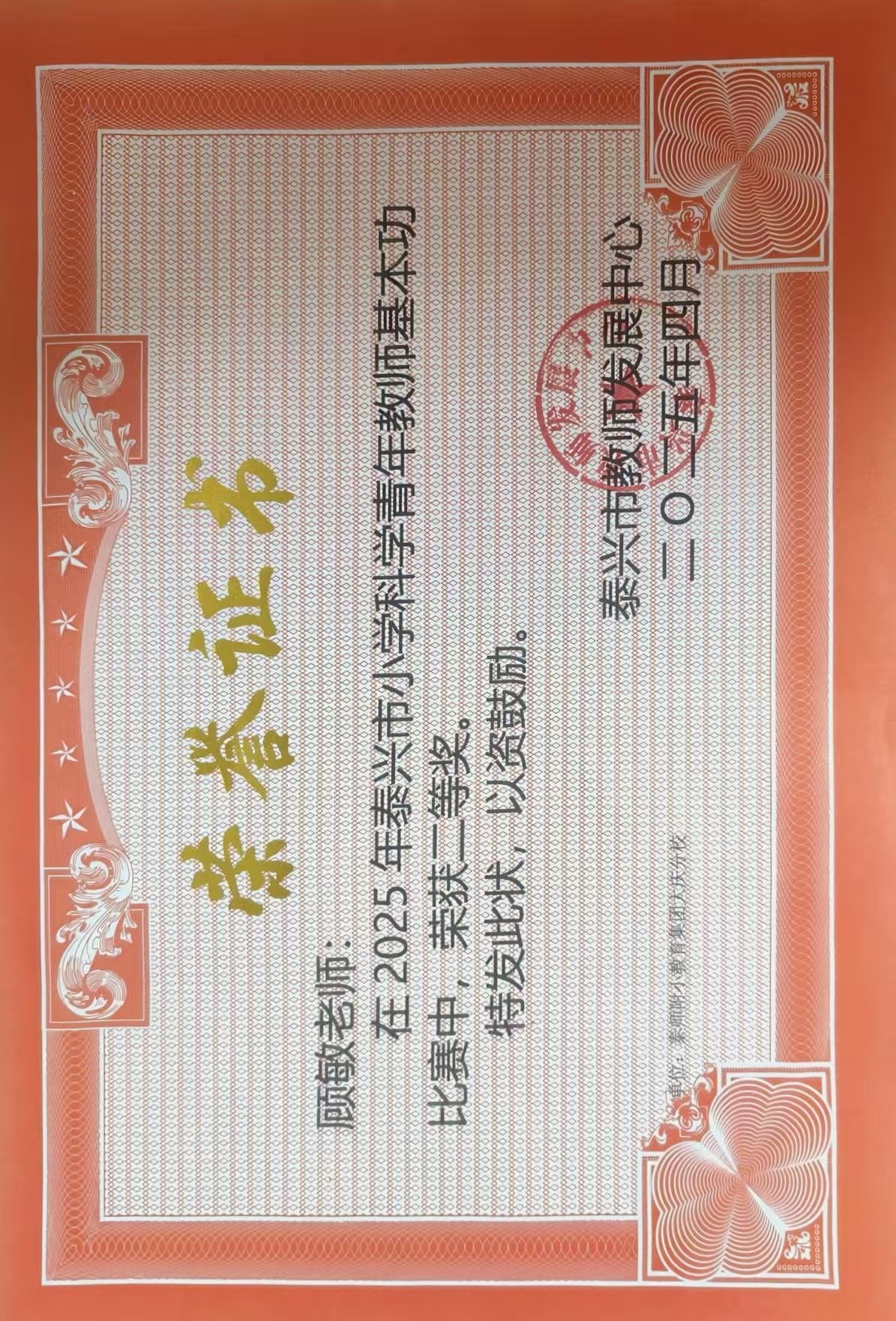 顾敏老师基本功二等奖