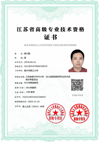 顾大鹏老师被评为高级教师
