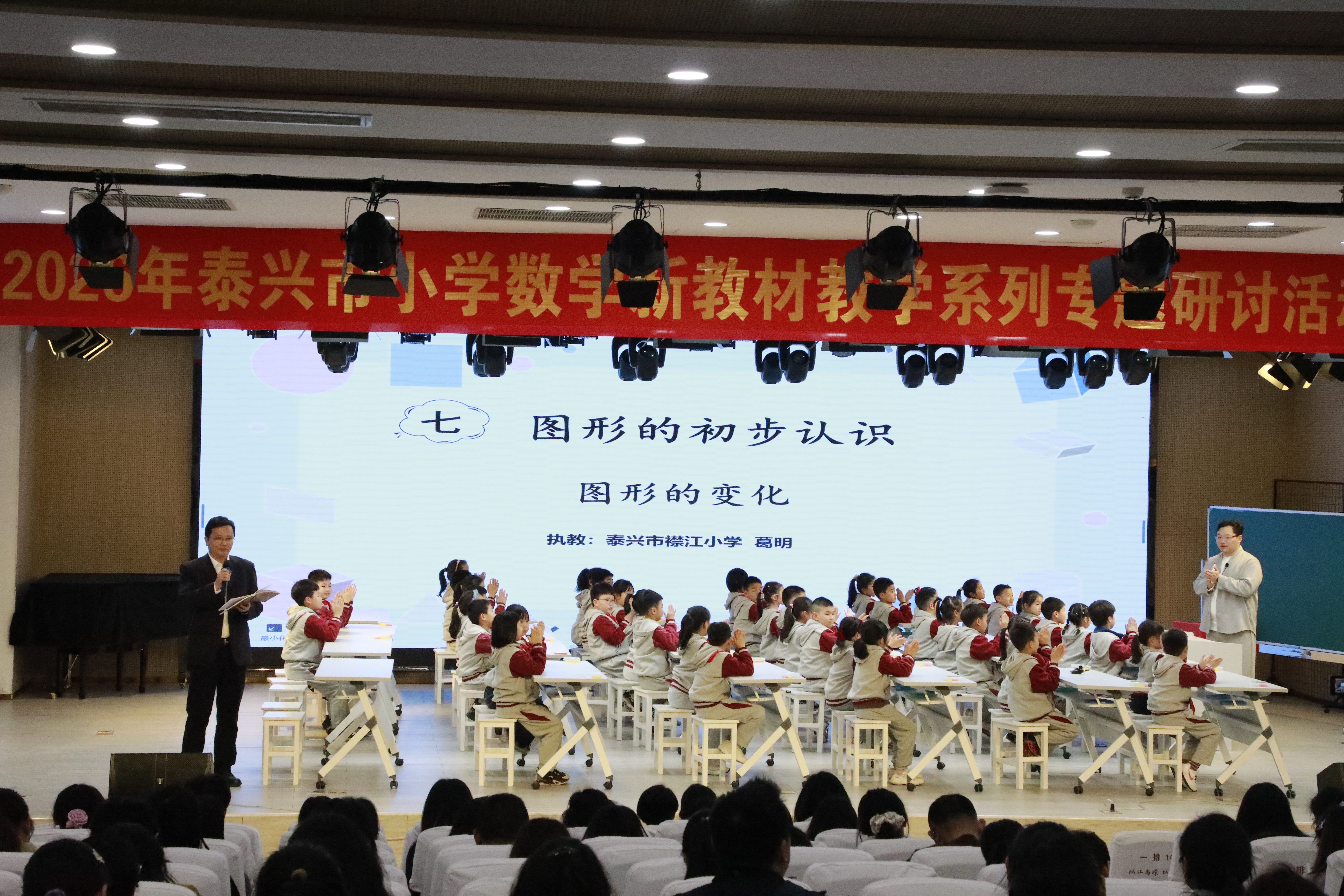 为深入践行新课标育人理念,切实助力一线教师吃透新教材核心内涵、精进课堂教学实践能力,4 月 20 日,小学数学新教材教学专题研讨活动(第二场)在泰兴市襟江小学教育集团襟江分校沐华校区顺利开展。本次活动聚焦专业成长与教研提质,工作室全体成员在领衔人李晓梅主任的带领下全程参与,与全市各校分管数学教学的校长、教导主任,一至三年级数学骨干教师,泰州市蔡文平小学数学名师工作室全体成员齐聚一堂,围绕“结构化视域下‘图形的认识’单元整体教学”展开深度研讨。