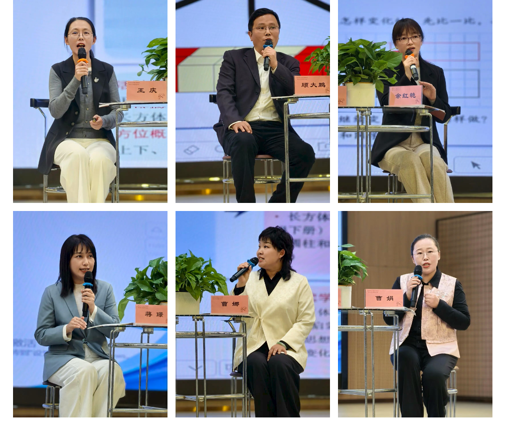 围绕新教材教学实施要求,本次培训特设专题沙龙研讨环节,由襟江小学教育集团磨课团队和鼓楼小学教育集团磨课团队联合展示,襟江分校教科室副主任、工作室核心成员王庆主持,聚焦“结构化视域下‘图形的认识’单元整体教学”展开深入交流。老师们结合新教材的新增内容,从教学价值、教学内容、实施策略解读核心要义,交流《图形的变化》一课的重难点突破、例题习题优化策略。大家一致认为,应从内容、方法、思维三个维度构建结构化教学体系,打通知识间的内在关联,助力学生几何素养实现阶梯式成长。