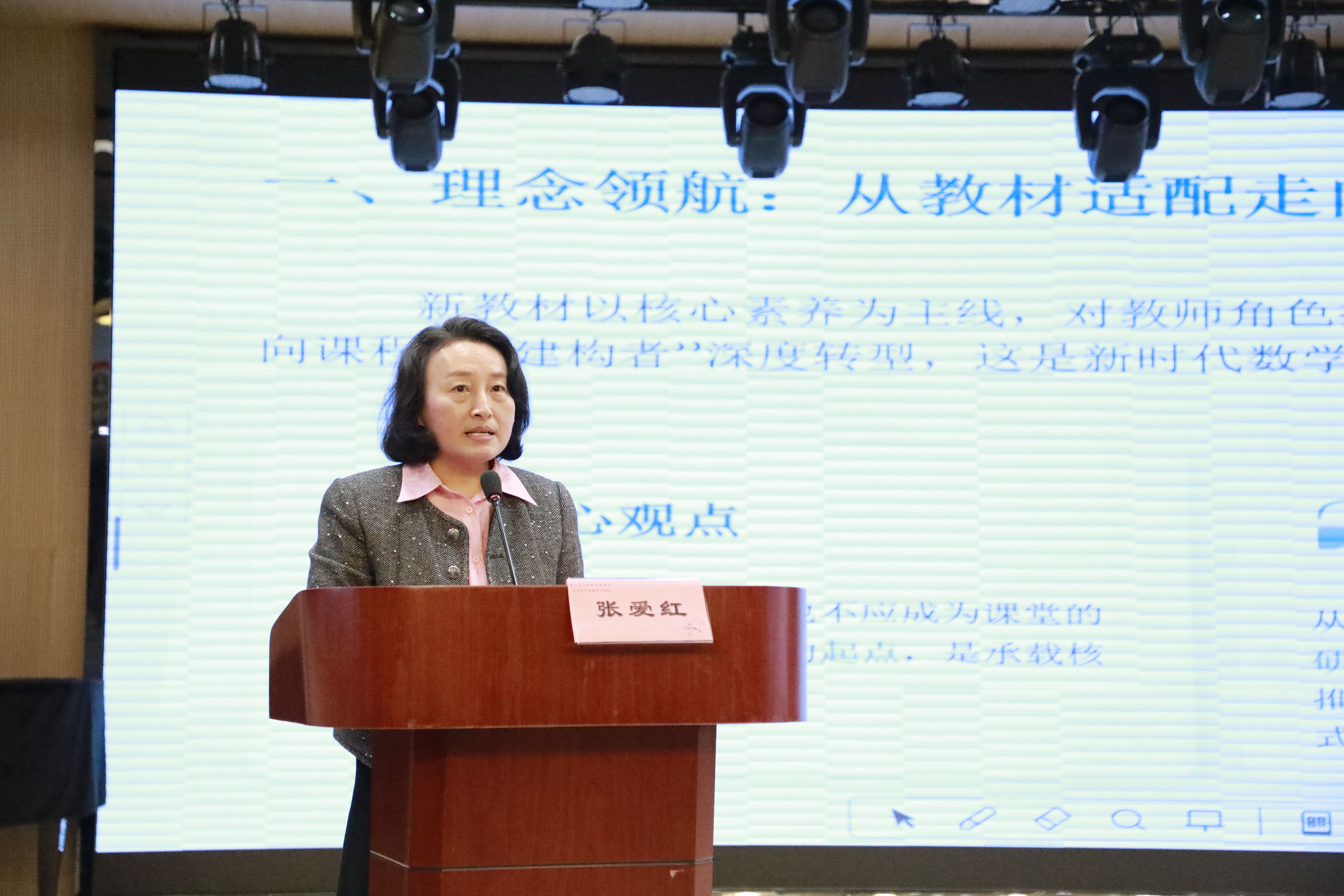 襟江分校副校长张爱红以《从教材到课程:“四维一体”育数学素养》为题,系统阐释了学校“研・教・评・创”四维一体的实践路径,从理念领航、思维聚力、双向成长三方面推进数学课程建设,推动四维一体的实践与课程建设深度融合,为小学数学新教材高质量实施、学生素养高质量发展贡献更多的襟江智慧和实践成果。