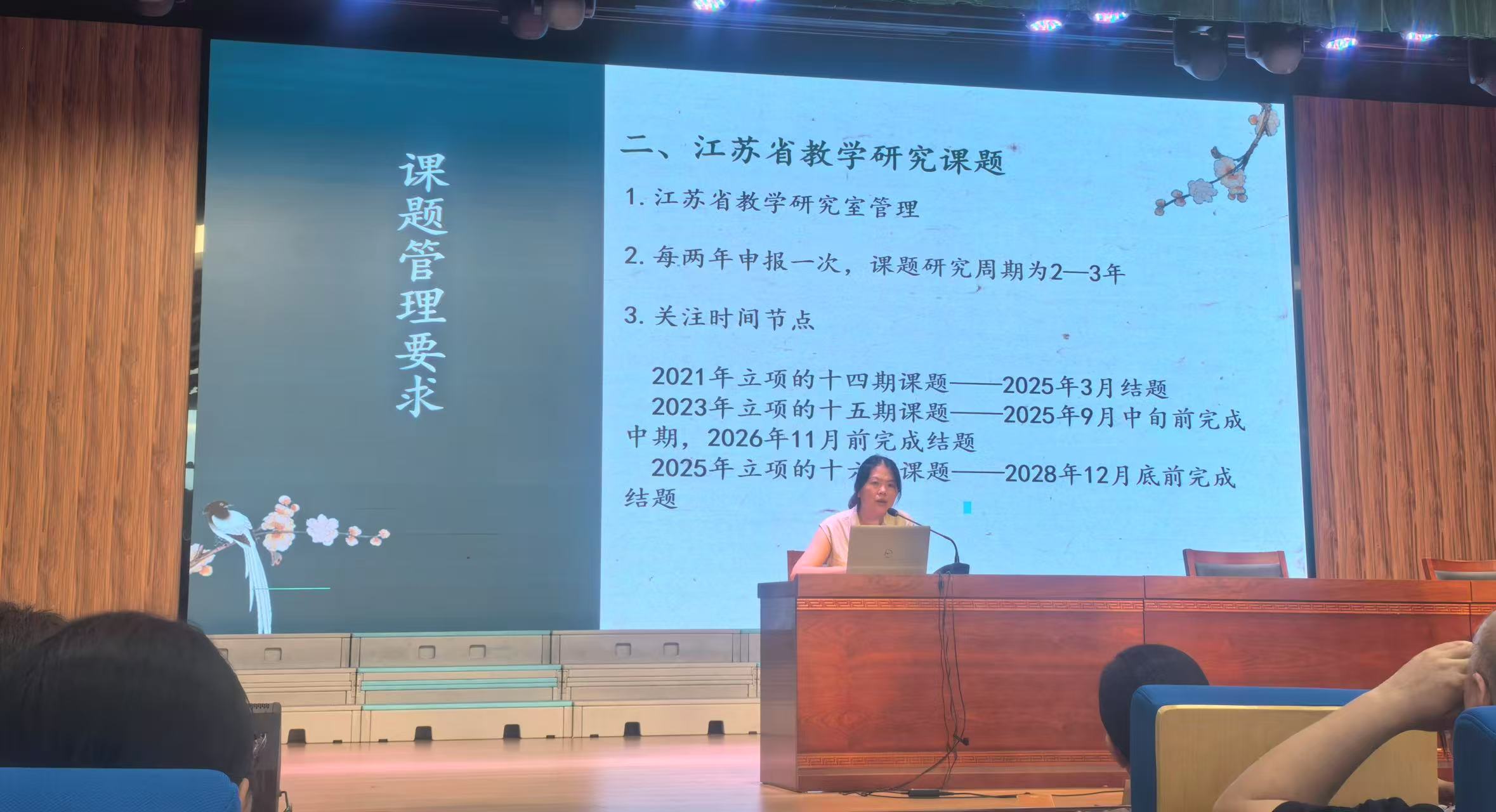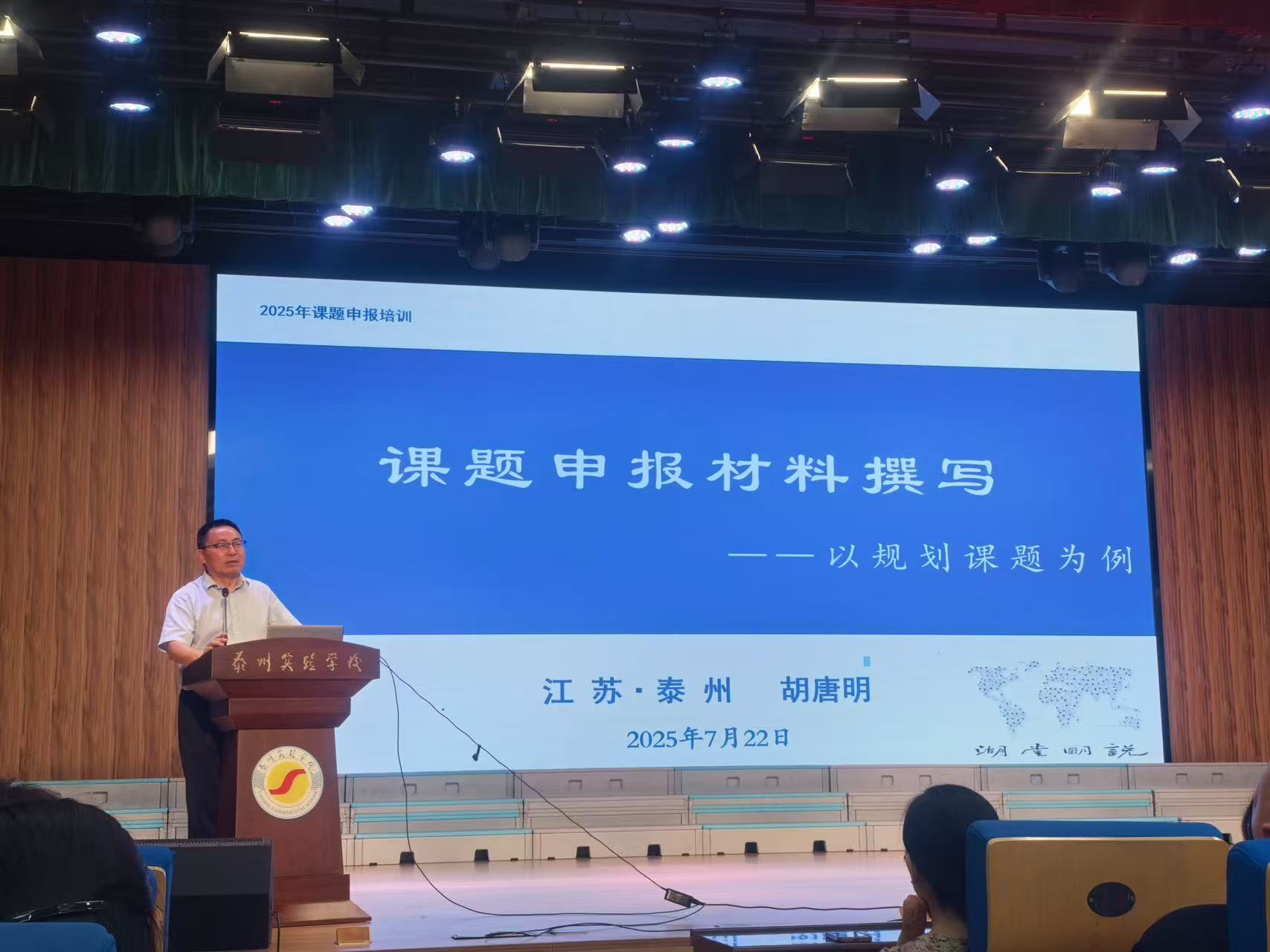 7月22日下午,泰兴市小学英语谢留莉老师工作室成员们怀揣着对教科研的热忱,全程参与了泰州市教育科学研究院组织的课题申报专题培训活动。泰州实验学校北校区报告厅内座无虚席!这场汇聚泰州市教育科学研究院院长陆全贵、副院长胡唐明、泰州实验中学教科室主任严春燕等专家的高质量培训,立足政策解读、聚焦实操指导、着眼深度赋能,系统阐释了课题申报的关键要素,更为教师专业发展指明了清晰的科研路径。