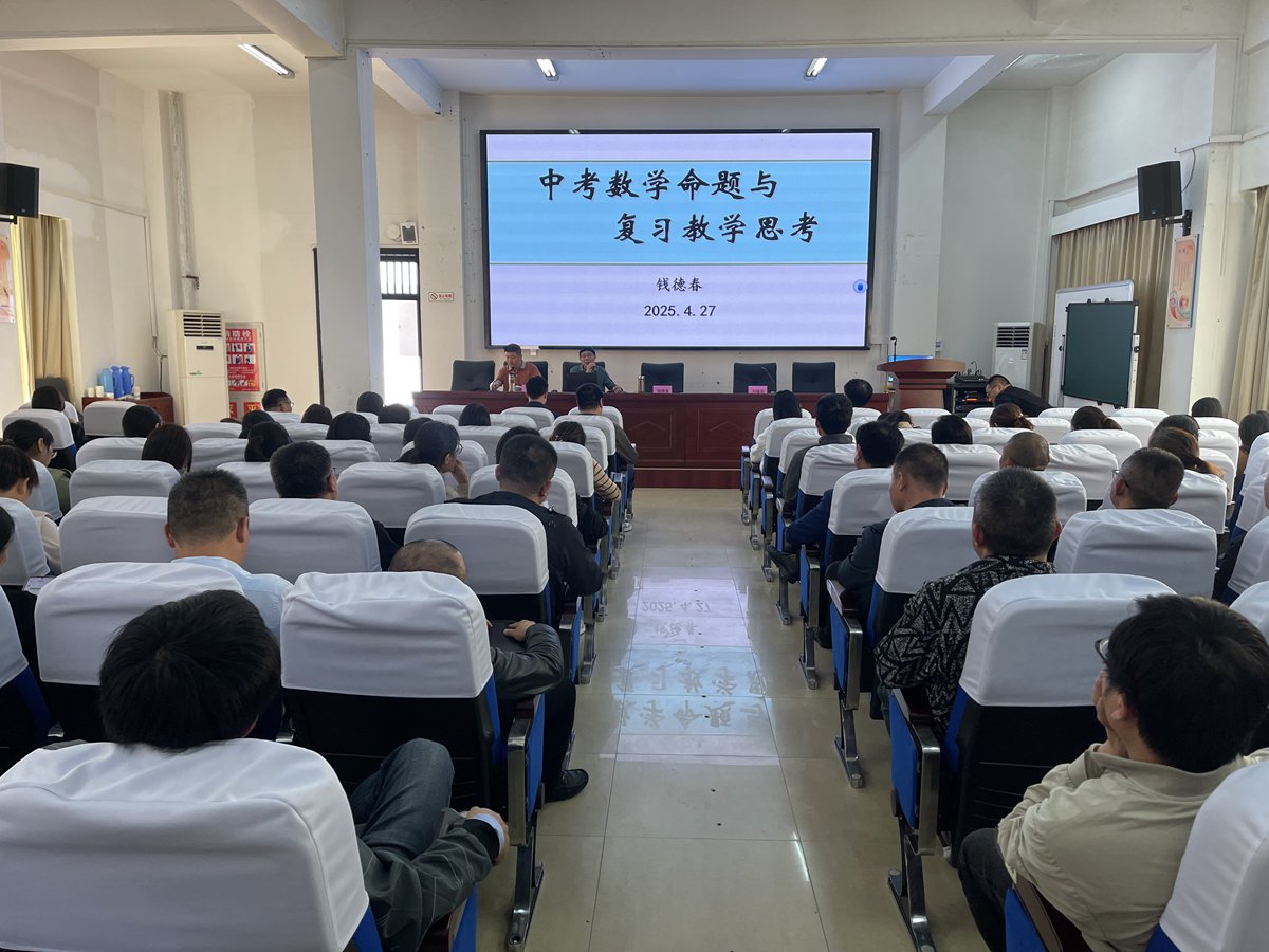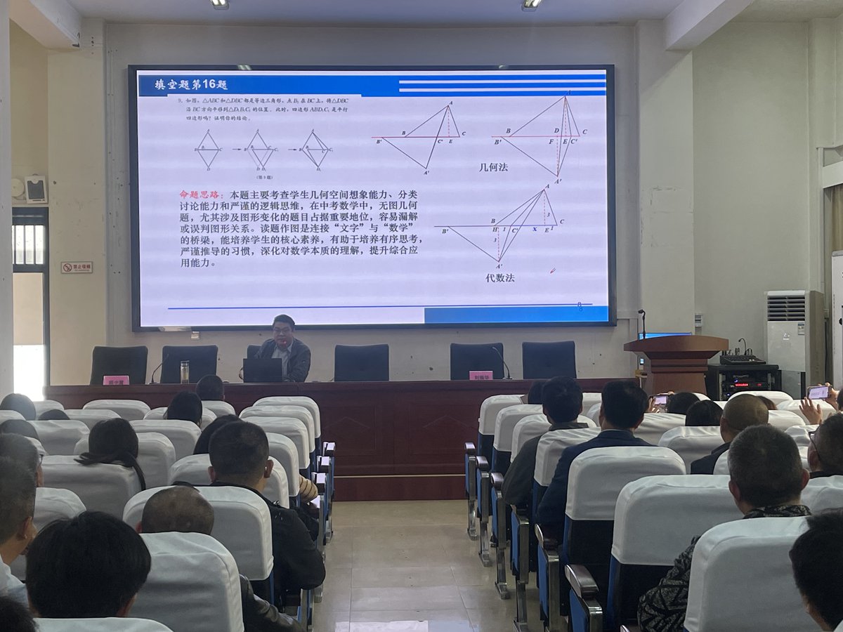 钱德春教授开设《中考数学命题与复习教学思考》的讲座,钱教授通过大量的案例指导老师为何复习?复习什么?怎么复习?做到“四精”“四能”,讲究通性通法。