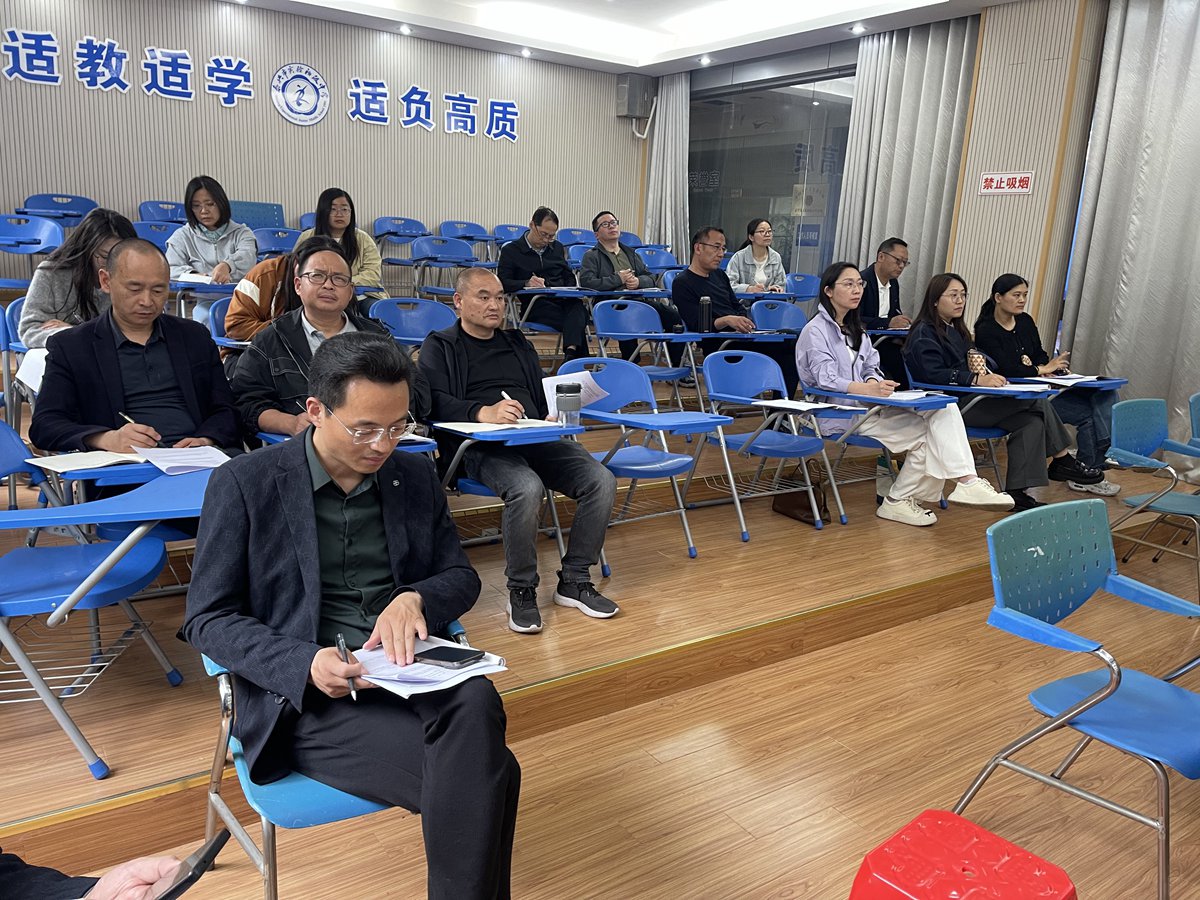 工作室成员徐晓剑校长就初中数学教学中的“问题链”设计,为大家作《链接问题,以问导思》专题讲座。徐校长指出“问题链”设计分“命题(作业设计)”和“课堂教学”两个方面,就“问题链”的实践意义和“问题链”的设计策略两方面提出自己的见解。“问题链”的实践意义方面:“问题链”要基于问题情境,激发学生学习兴趣;“问题链”要指向全面,关注整合关联;“问题链”要突出自主探究,培养思维能力。“问题链”的设计策略方面:“问题链”要基于教材内容、基于学生认知、基于数学思想方法。