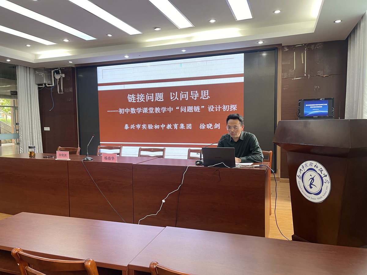 为引导初中数学教师进一步研究新课标,落实素养导向的教学理念与教学要求,全面提升初中课堂教学质量,促进数学教师的专业发展,发挥名教师工作室的辐射引领作用,5月19日下午,泰兴市第四届初中数学名教师工作室与江阴市杨春华名师工作室进行联谊活动,暨工作室第五次集中研修活动。本次研修活动的主题是“课堂问题链设计”教学研讨。