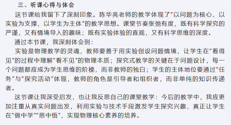 本次活动为高中物理名师工作室成员提供了一次宝贵的学习机会,工作室成员积极参与,收获颇丰,现将观摩老师的学习心得与大家分享。