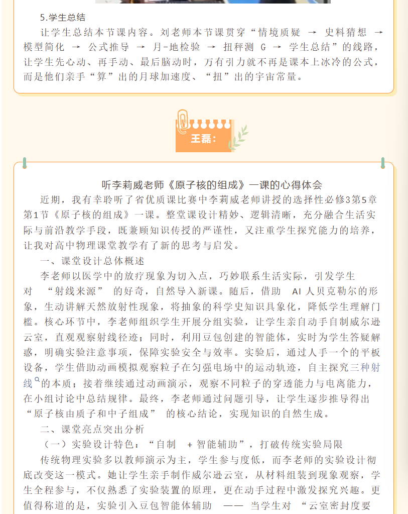 本次活动为高中物理名师工作室成员提供了一次宝贵的学习机会,工作室成员积极参与,收获颇丰,现将观摩老师的学习心得与大家分享。