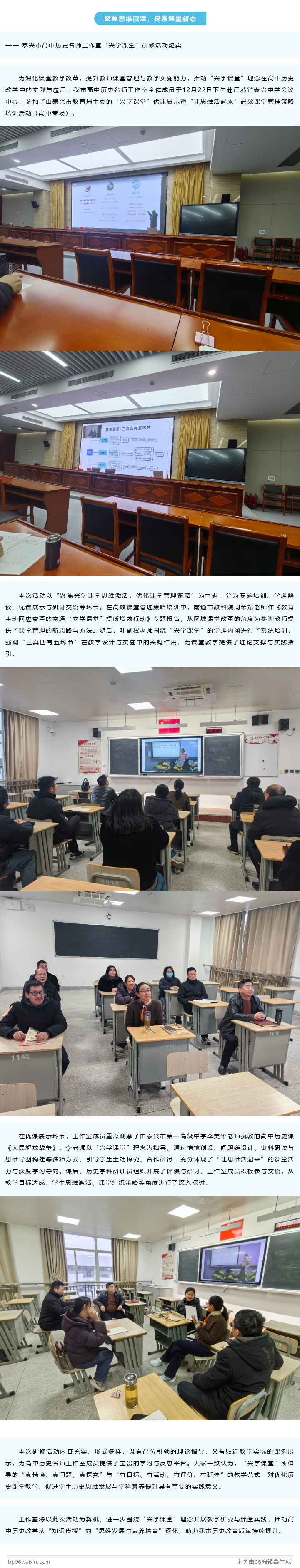 泰兴市高中历史名师工作室“兴学课堂”研修活动纪实