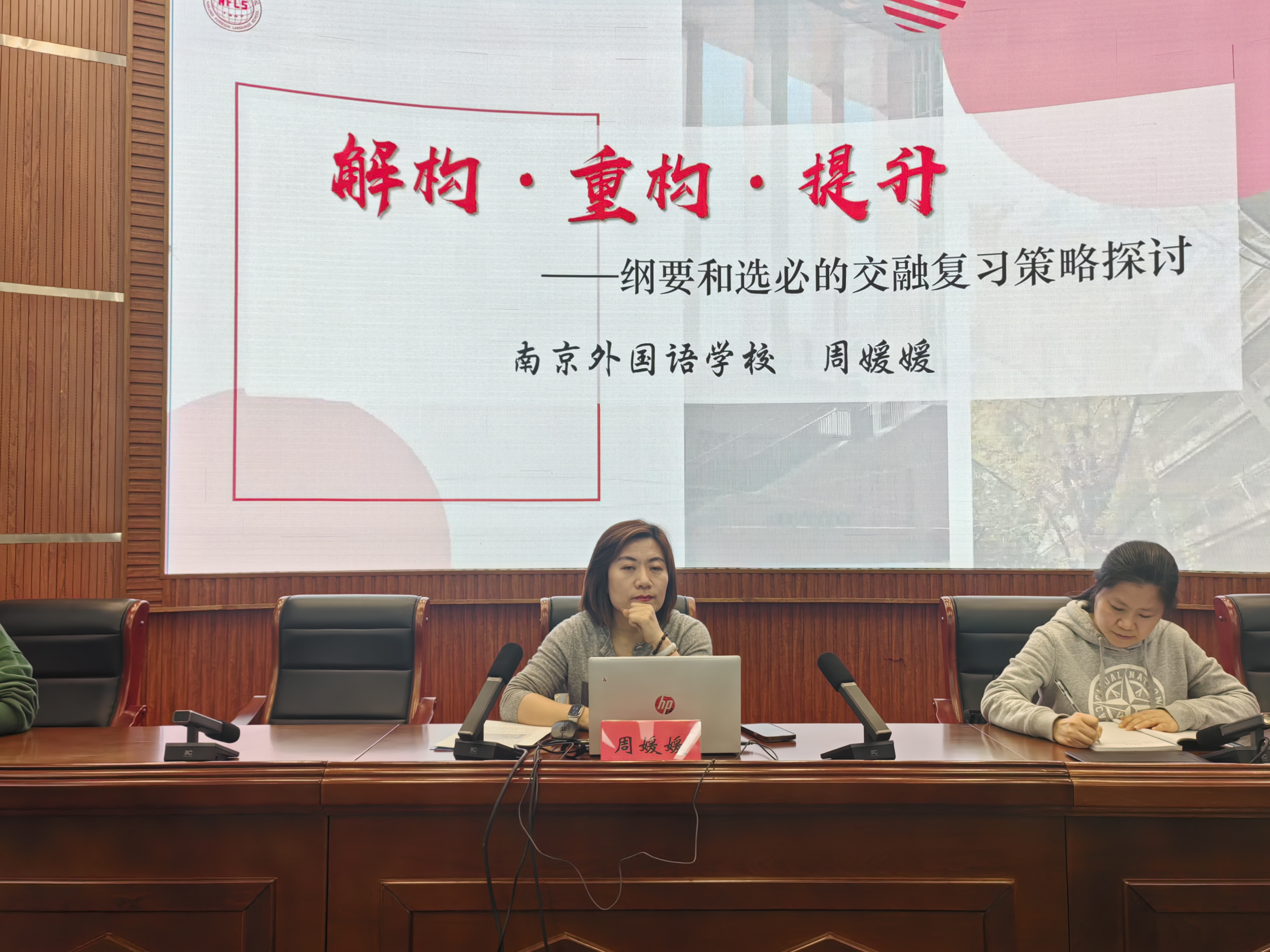 南京外国语学校周媛媛老师带来了专题讲座《解构·重构·提升——纲要和选必的交融复习策略探讨》。周老师立足近三年教育部普通高校招生政策演变,指出高考命题日益注重考查学生的关键能力、学科素养和思维品质,强调“融会贯通和灵活运用”。她以“战争与国际关系”“民族国家与国际法”等主题为例,展示了如何通过“大单元—大概念—关键问题—自主探究”的路径,将《中外历史纲要》与选择性必修内容进行有机交融。