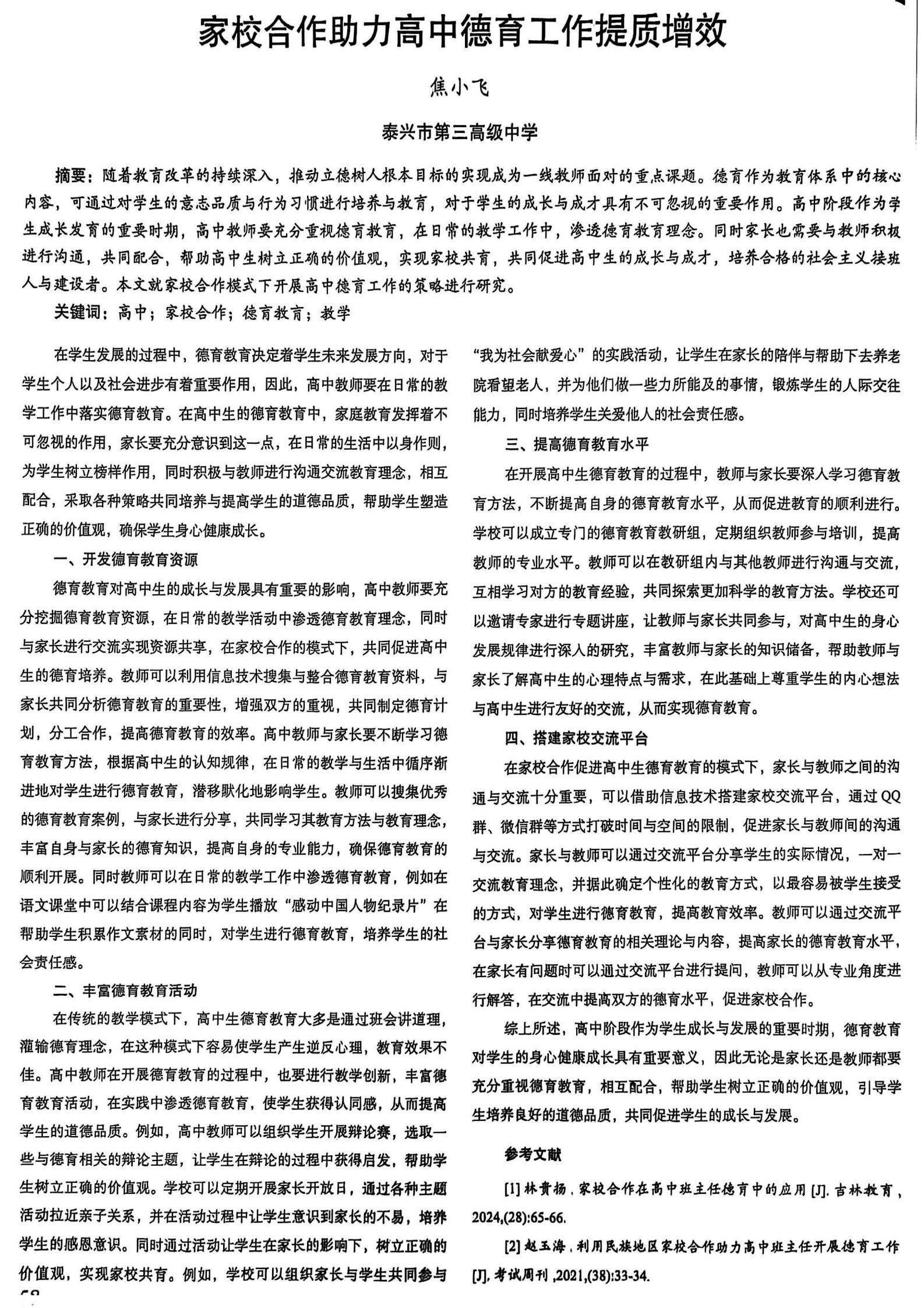 家校合作助力高中德育工作提质增效(焦小飞)