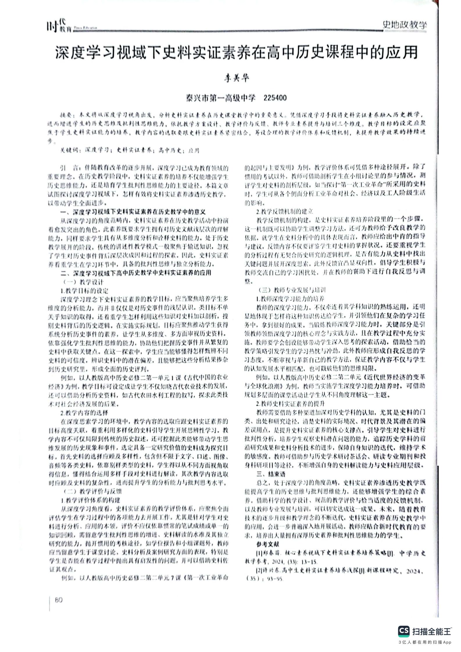 深度学习视域下史料实证素养在高中历史课堂中的应用(李美华)