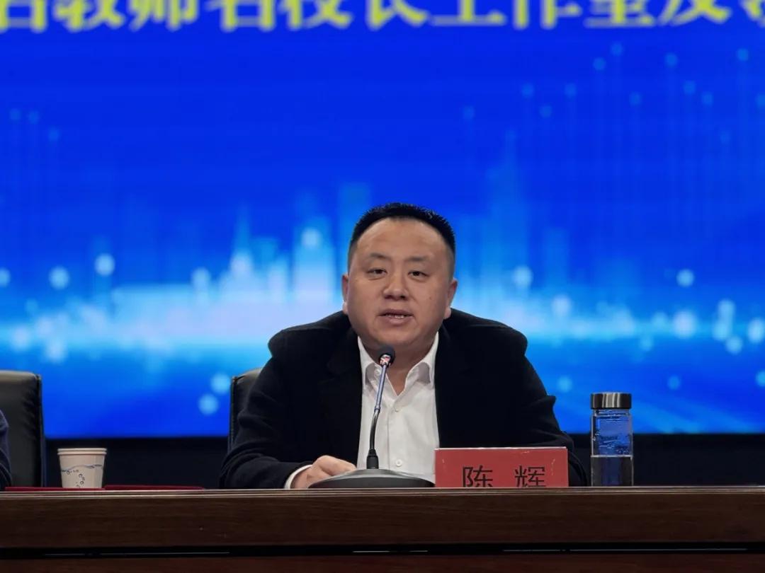 市教师发展中心主任陈辉宣读泰兴市第三届名教师名校长工作室先进集体、先进个人以及第四届名教师名校长工作室成员名单。