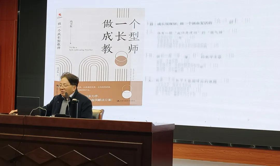 南通市教育科学研究院副院长冯卫东以《点亮教育认知的明灯》为题,带来了一场兼具理论深度与实践启发的讲座。他提出,“教学主张”是教师教育思想的灵魂,需扎根课堂实践并凝练为“方法论”。冯院长通过“明、铭、鸣、名”四字箴言,生动阐释了教学主张的价值: