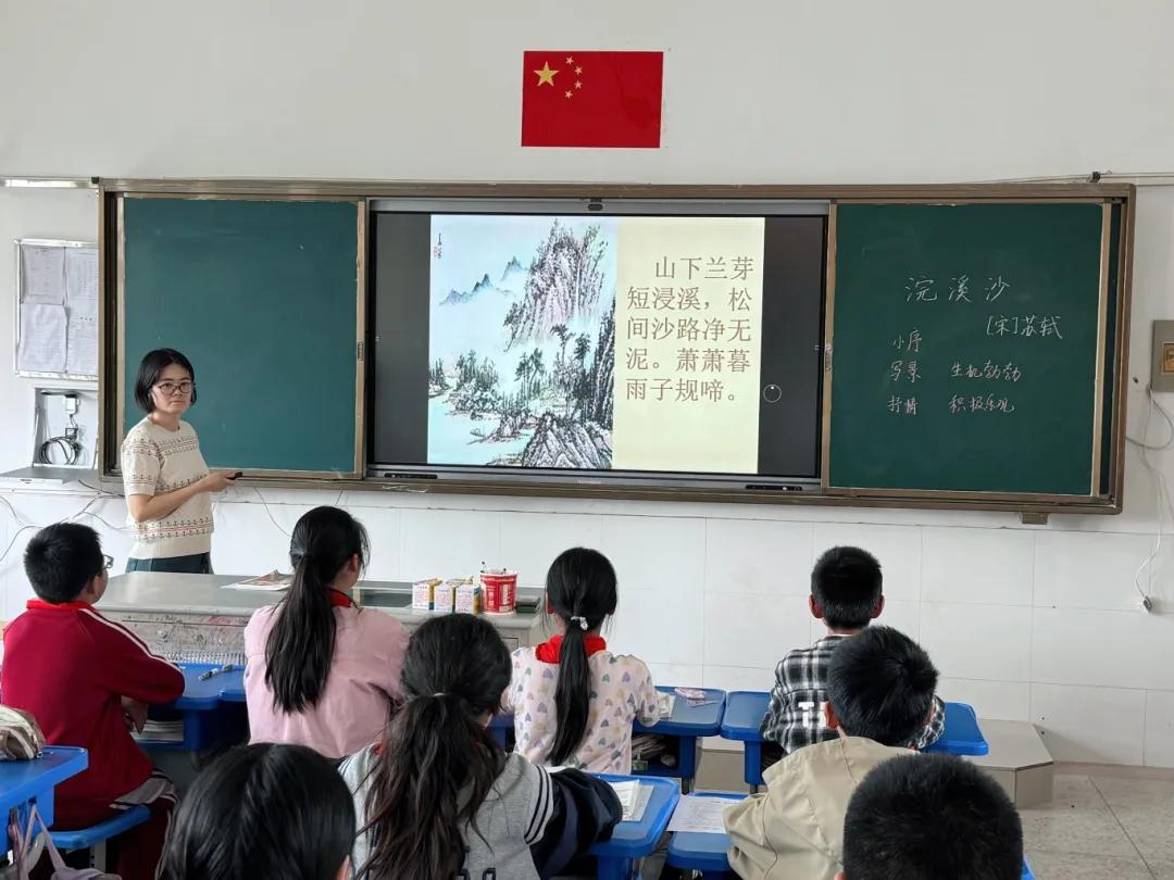 六年级语文课堂,李乔卫老师以苏轼的《浣溪沙》为引,通过诗词意境与人生哲理的深度解析,带领学生走进“溪边落花、旧游如梦”的画卷,在互动中启发思考,感悟“休将白发唱黄鸡”的豁达情怀。