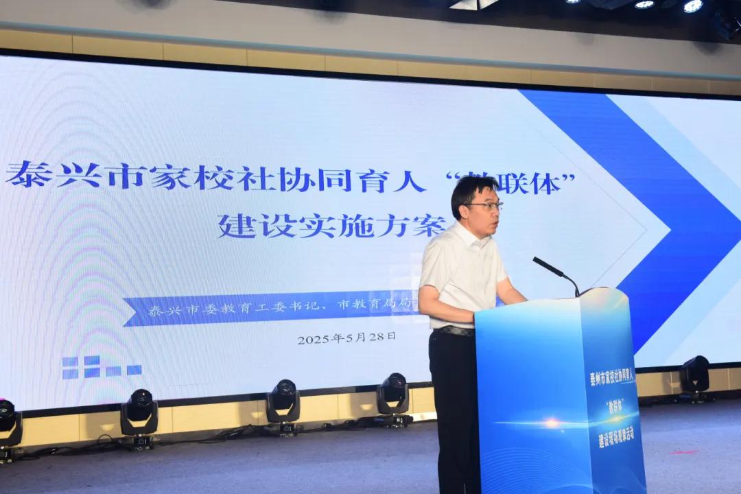 泰兴市委教育工委书记、市教育局局长王新军对《泰兴市家校社协同育人“教联体”建设实施方案》进行了解读,该方案聚焦六大行动:“泰知汇”馆校协同、“泰润心”医教互促、“泰活力”体教互融、“泰协同”家校互动、“泰育融”社教同频、“泰平安”警校同步。他强调家校社需“同向而行、同频共振”,构建育人新生态。