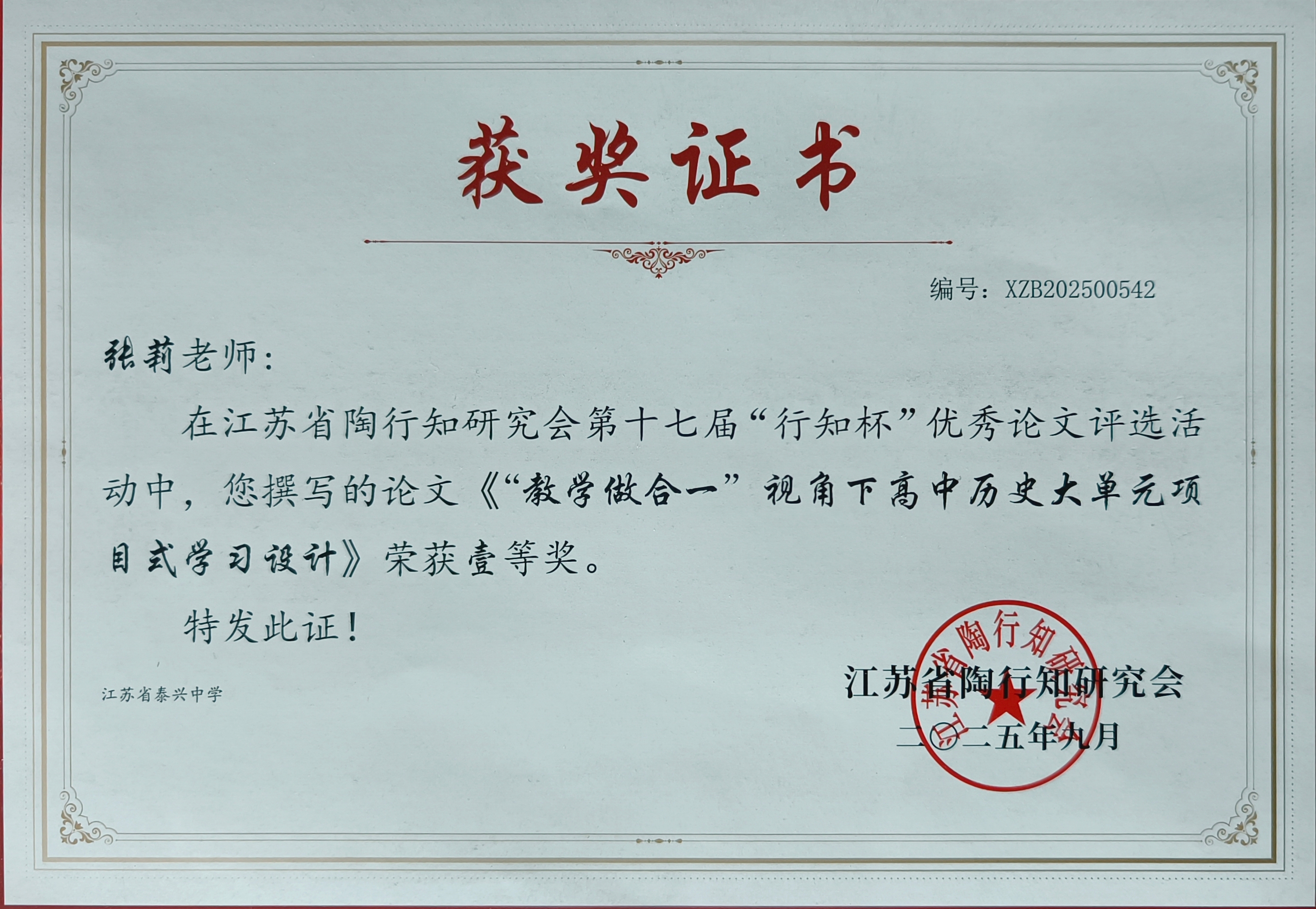 2025-11-26 祝贺张莉老师、赵兴明老师在省市论文比赛获得优异名次